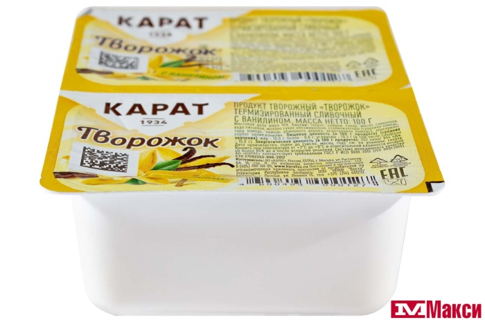 ПРОДУКТ ТВОРОЖНЫЙ "ТВОРОЖОК" СЛИВОЧНЫЙ 10% 100Г (КАРАТ) (БЗМЖ)(с ванилином)