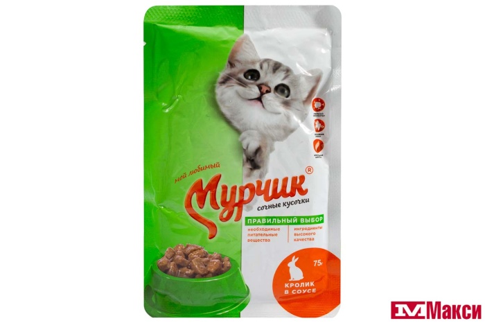 КОРМ Д/КОШЕК "МУРЧИК" В СОУСЕ 75Г В АССОРТ.(с кроликом)