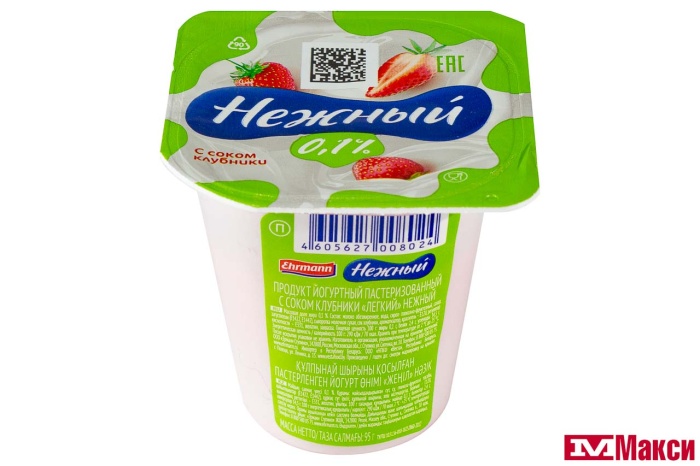 ПРОДУКТ ЙОГУРТНЫЙ С СОКОМ "НЕЖНЫЙ" ЛЕГКИЙ 0,1% 95Г (CAMPINA) (БЗМЖ)(с соком клубники)