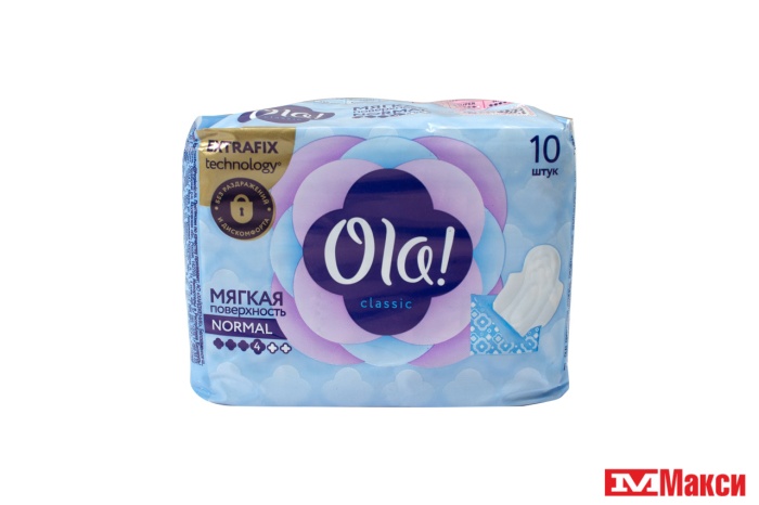 ПРОКЛАДКИ ГИГИЕНИЧЕСКИЕ "OLA" CLASSIC WINGS NORMAL SINGLES МЯГКАЯ ПОВЕРХНОСТЬ 10ШТ