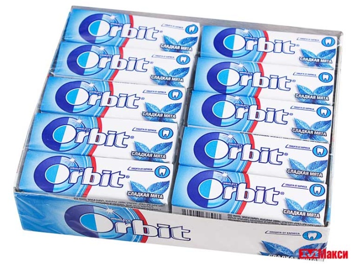 ЖЕВАТЕЛЬНАЯ РЕЗИНКА "ORBIT" ПОДУШЕЧКИ 13,6Г (РИГЛИ)(сладкая мята)