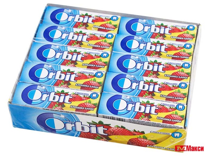 ЖЕВАТЕЛЬНАЯ РЕЗИНКА "ORBIT" ПОДУШЕЧКИ 13,6Г (РИГЛИ)(клубника-банан)