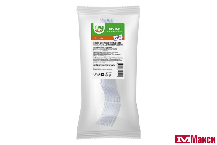 ПОСУДА: ВИЛКА ОДНОРАЗОВАЯ ПРОЗРАЧНАЯ 10ШТ (СЕМЬЯ ДОВОЛЬНА)