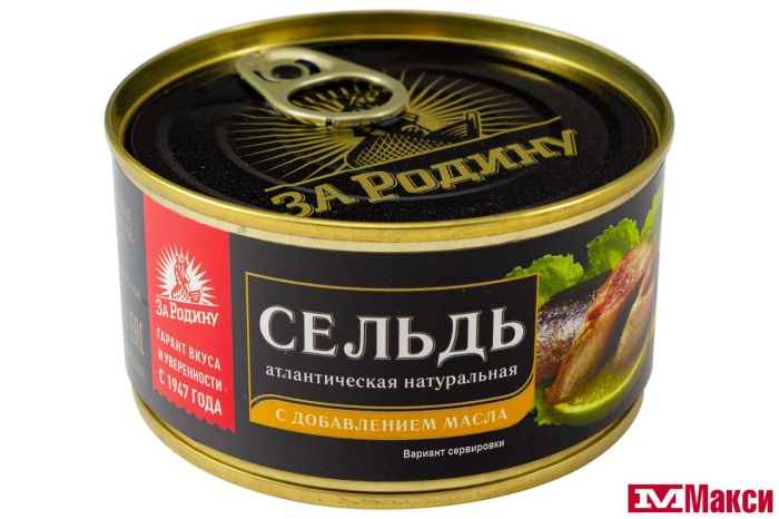 СЕЛЬДЬ (ЗА РОДИНУ) АТЛАНТИЧЕСКАЯ НАТУРАЛЬНАЯ С ДОБАВЛЕНИЕМ МАСЛА 185Г Ж/Б КЛЮЧ