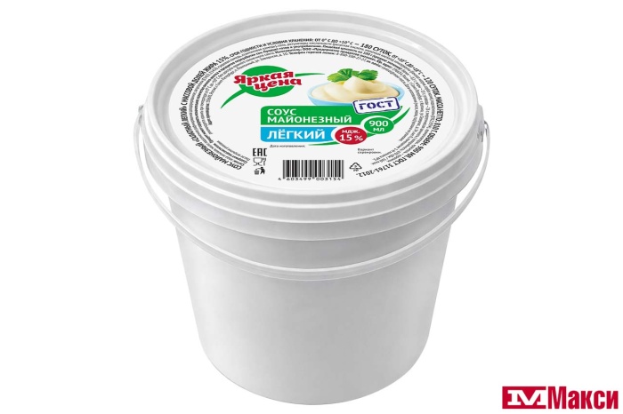 СОУС МАЙОНЕЗНЫЙ "ЛЕГКИЙ" 15% 900МЛ ВЕДРО (ЯРКАЯ ЦЕНА)