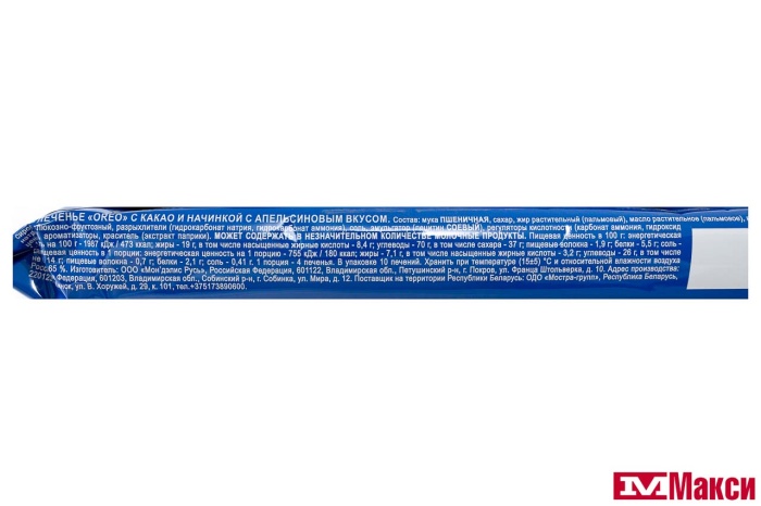 ПЕЧЕНЬЕ "OREO" С КАКАО И НАЧИНКОЙ С АПЕЛЬСИНОВЫМ ВКУСОМ 95Г (МОН' ДЭЛИС РУСЬ)