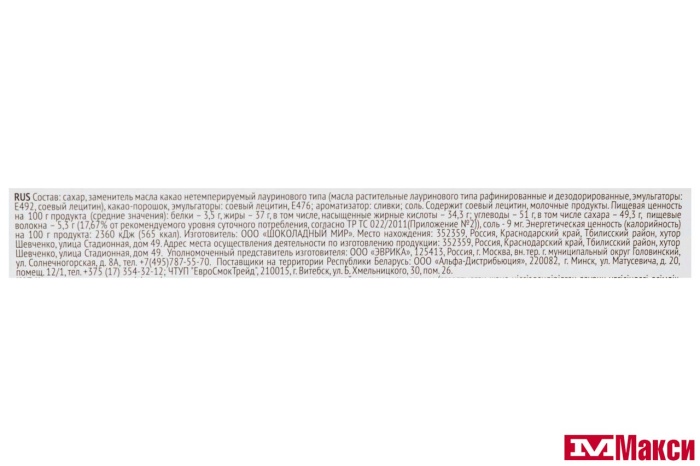 ШОКОЛАД МОЛОЧНЫЙ С ПЕЧЕНЬЕМ 45Г (МОК-МОК)