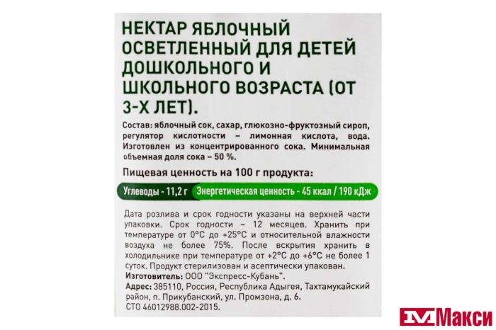 НЕКТАР "САДЫ КУБАНИ" ЯБЛОЧНЫЙ 2Л (ЭКСПРЕСС-КУБАНЬ)