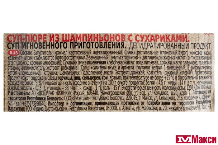 СУП-ПЮРЕ БЫСТРОГО ПРИГОТОВЛЕНИЯ "БЫСТРОСУП" ИЗ ШАМПИНЬОНОВ С СУХАРИКАМИ 17Г (ДОШИРАК)
