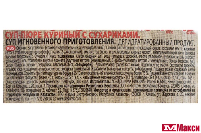 СУП-ПЮРЕ БЫСТРОГО ПРИГОТОВЛЕНИЯ "БЫСТРОСУП" КУРИНЫЙ С СУХАРИКАМИ 17Г (ДОШИРАК)
