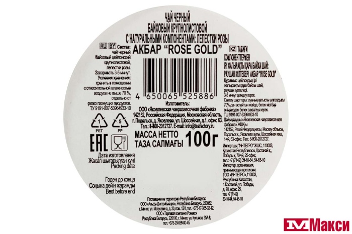 ЧАЙ "АКБАР" ROSE GOLD ЧЕРНЫЙ 100Г ПЛ/Б (AKBAR)