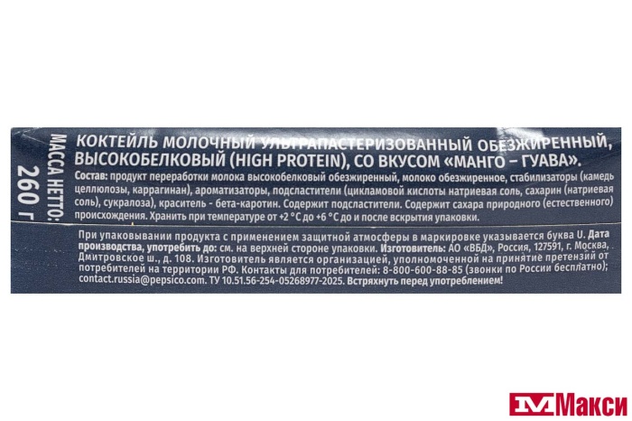 КОКТЕЙЛЬ МОЛОЧНЫЙ "NEO" ОБЕЗЖИРЕННЫЙ 20Г БЕЛКА 260Г (ВИММ-БИЛЛЬ-ДАНН) (БЗМЖ)(манго-гуава)